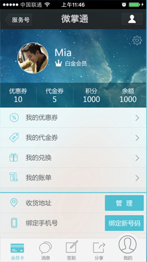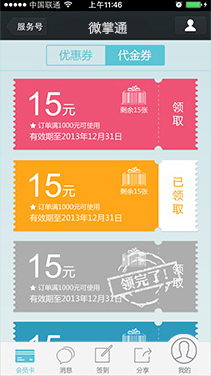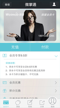 通过在微信内植入会员卡,基于全国6亿微信用户,帮助企业建立集品牌推广、会员管理、营销活动、统计报表于一体的微信会员管理平台。清晰记录企业用户的消费行为并进行数据分析;还可根据用户特征进行精细分类,从而实现各种模式的精准营销。